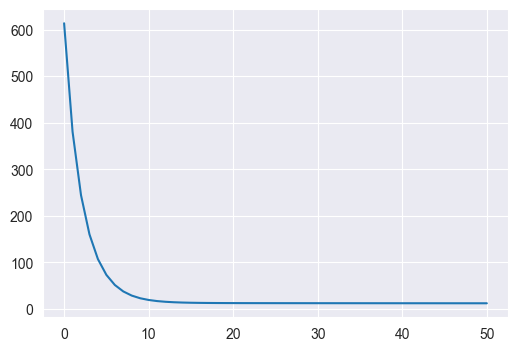 (w, losses) = gradient_descent(mse_and_grad, w0, 0.1, 50, Xweight, y)