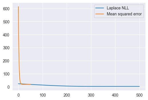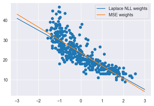 We see that the MSE weights are more sensitive to outliers than the Laplace NLL weights.