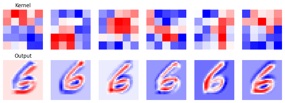 Center the kernel at the second element of the input: \[3 \cdot 1 + (-1) \cdot 2 + 5 \cdot 1 = 3 - 2 + 5 = 6\]