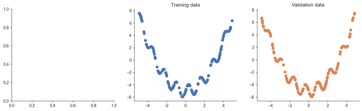 Let’s start by creating a simple dataset to use for the next few problems. We’ll use a regression dataset similar to the one we saw in class. In this case, I’ve provied data already split into training and validation sets.