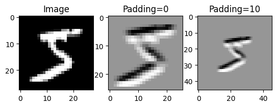 Note that without padding, we only consider locations for the kernel where every entry aligns with an entry from the input, resulting in an output that is shorter than the input.