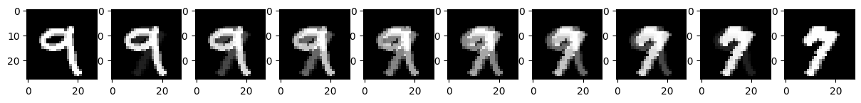 Let’s now consider some neat things we can do with our autoencoder model! We’ll start with image interpolation, that is, lets try to smoothly transition from one image to another.