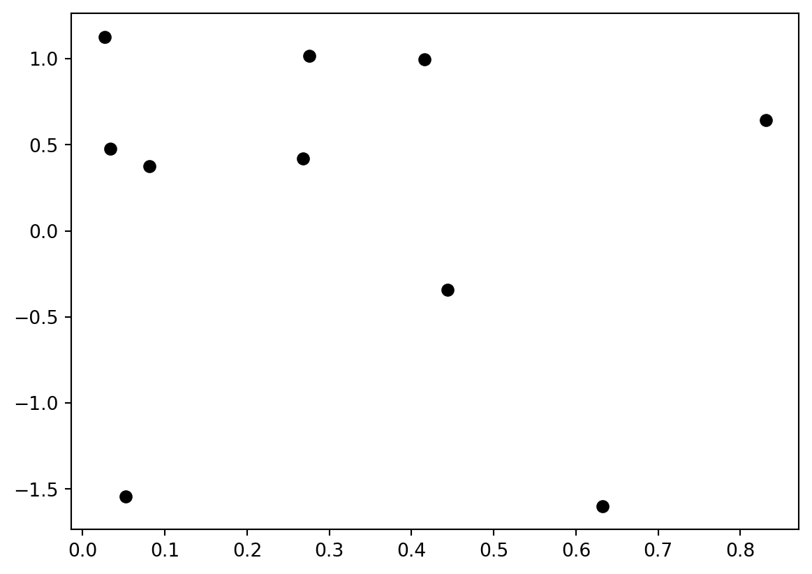 The string determines the plot appearance – in this case, black circles. You can use color strings (‘r’, ‘g’, ‘b’, ‘m’, ‘c’, ‘y’, …) or use the “Color” keyword to specify an RGB color. Marker appearance (‘o’,‘s’,‘v’,‘.’, …) controls how the points look.