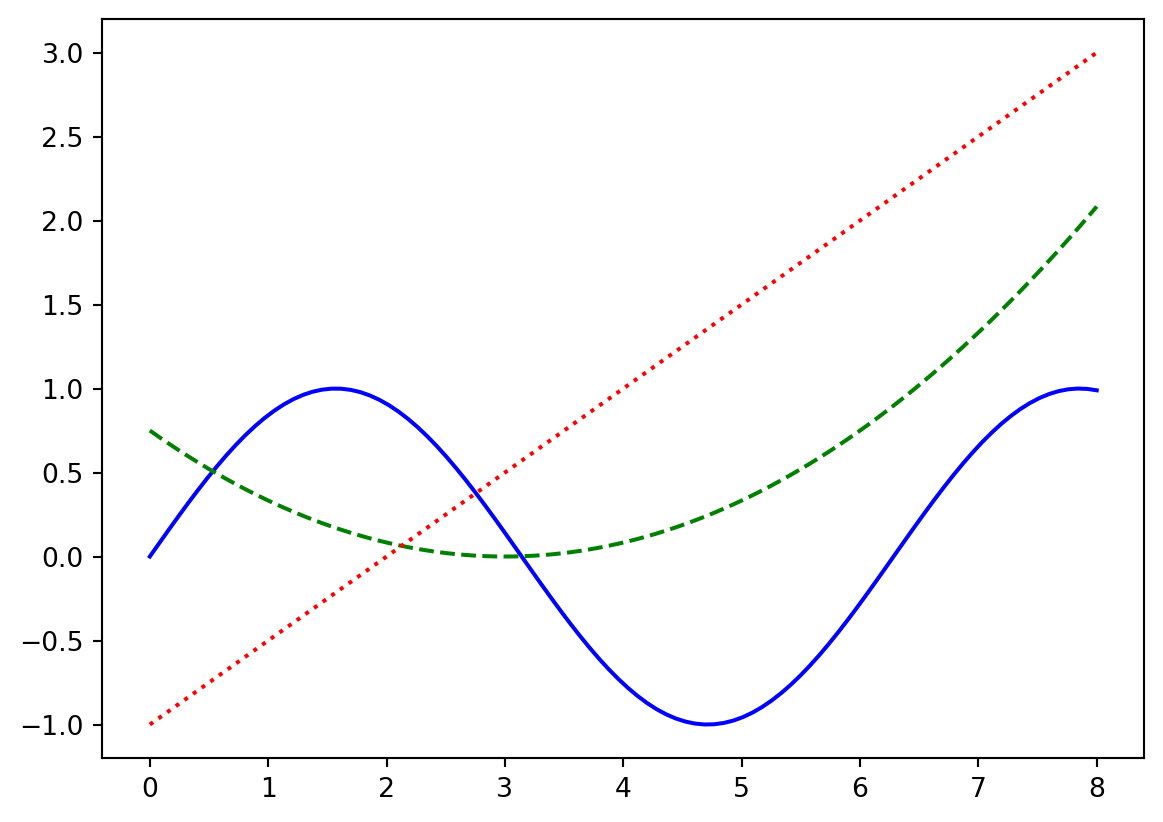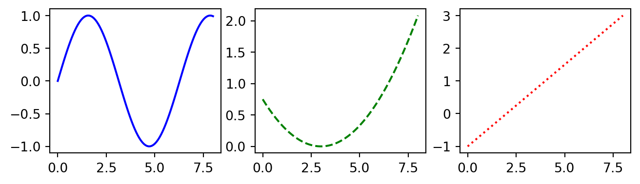 ax[2].plot(x_values, y3, 'r:'); # and y3 in the last