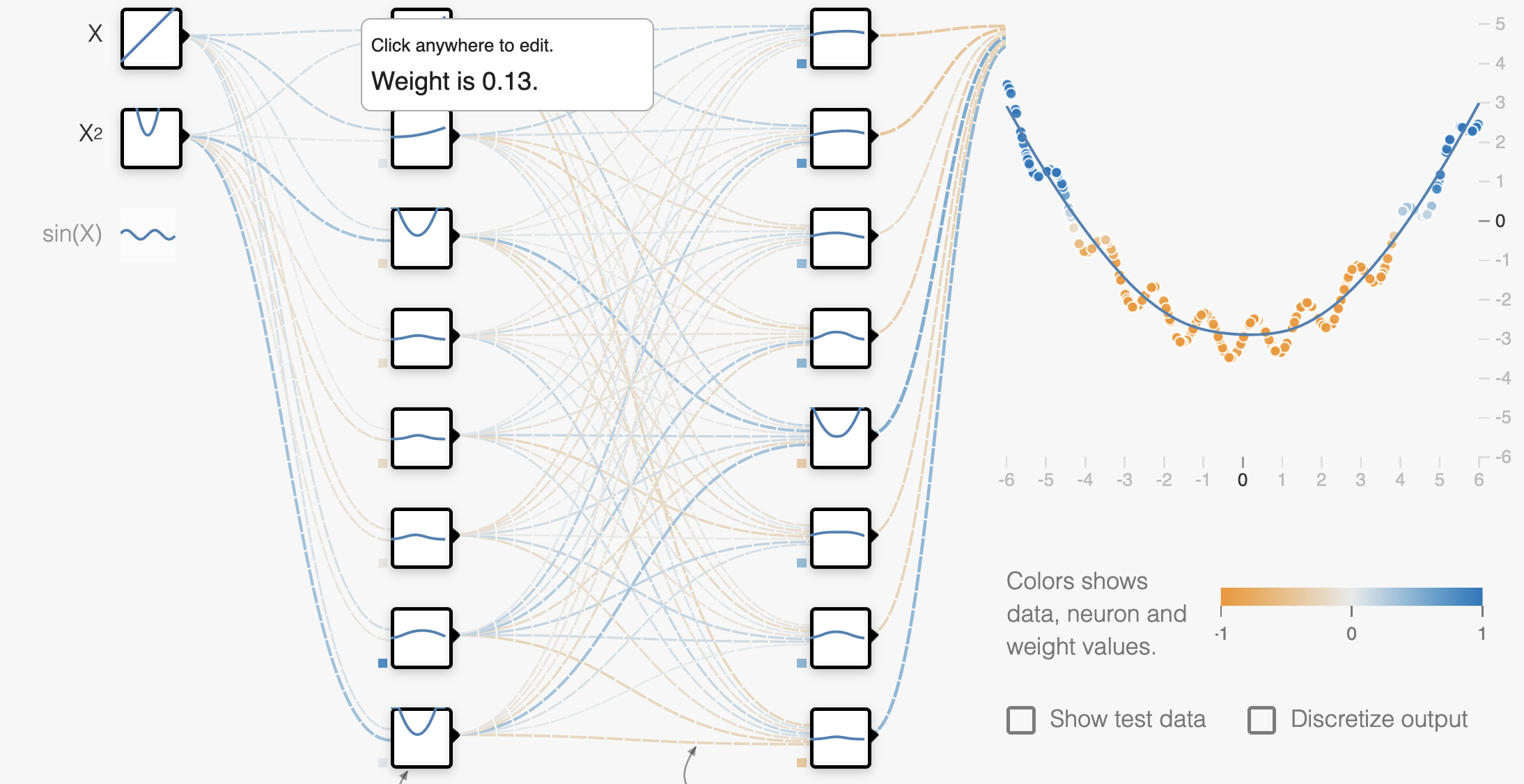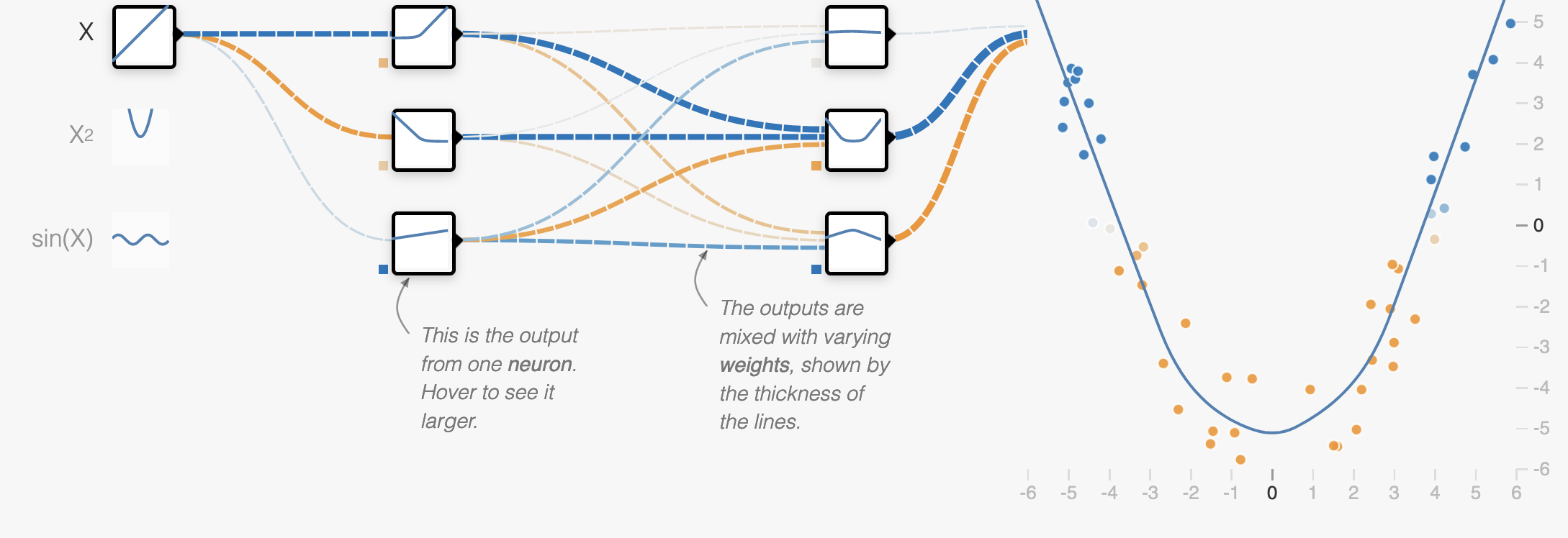 Let’s look at a specific example where we’ll fit 3 neural networks of different levels of complexity on the same data: