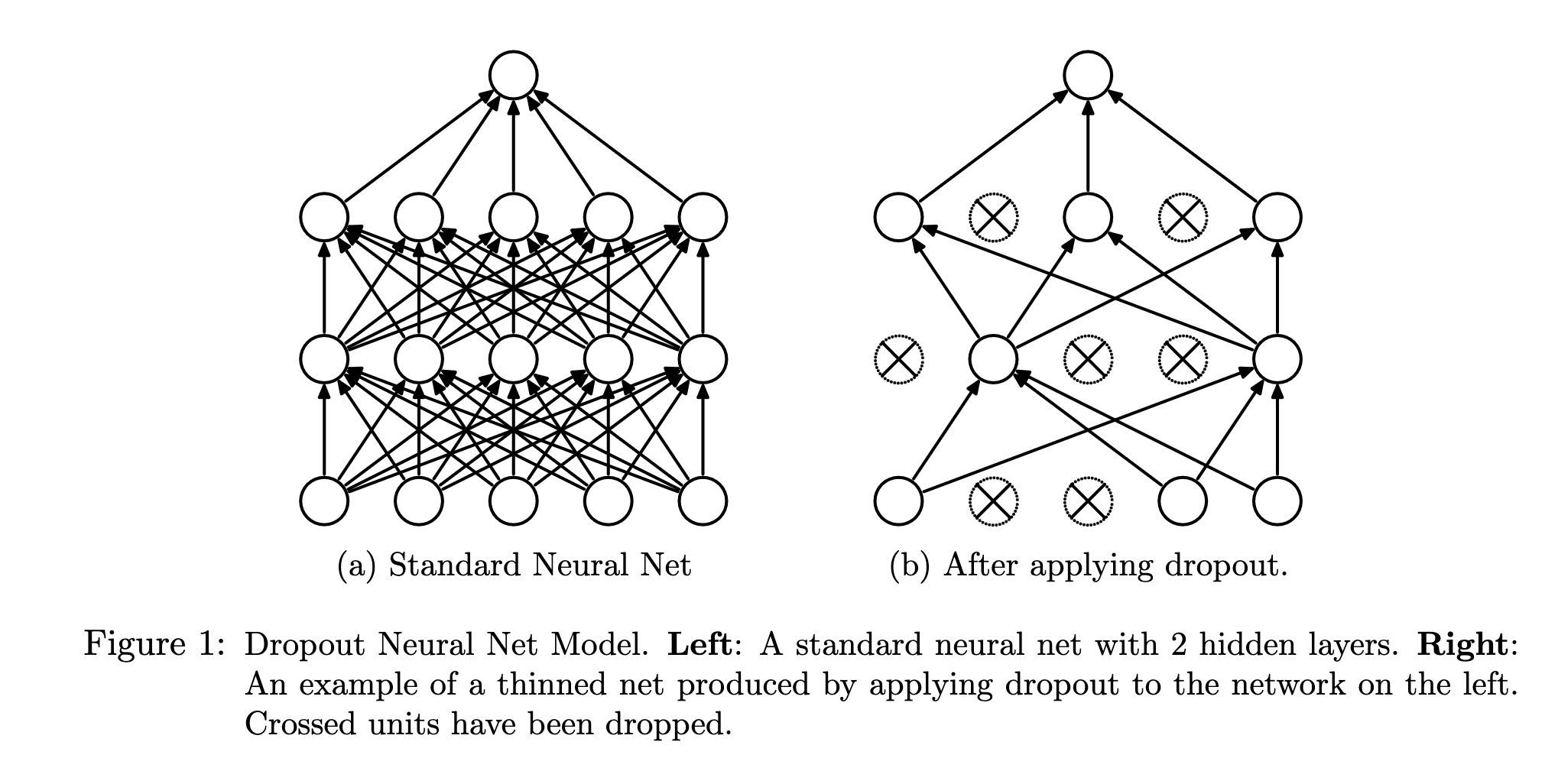 If \(r=0.5\) (the value suggested by the original dropout inventors), then on average the output of our function with dropout will only be half as large as the function without dropout! If we simply get rid of the dropout functions, the scale of our predictions will be way off.