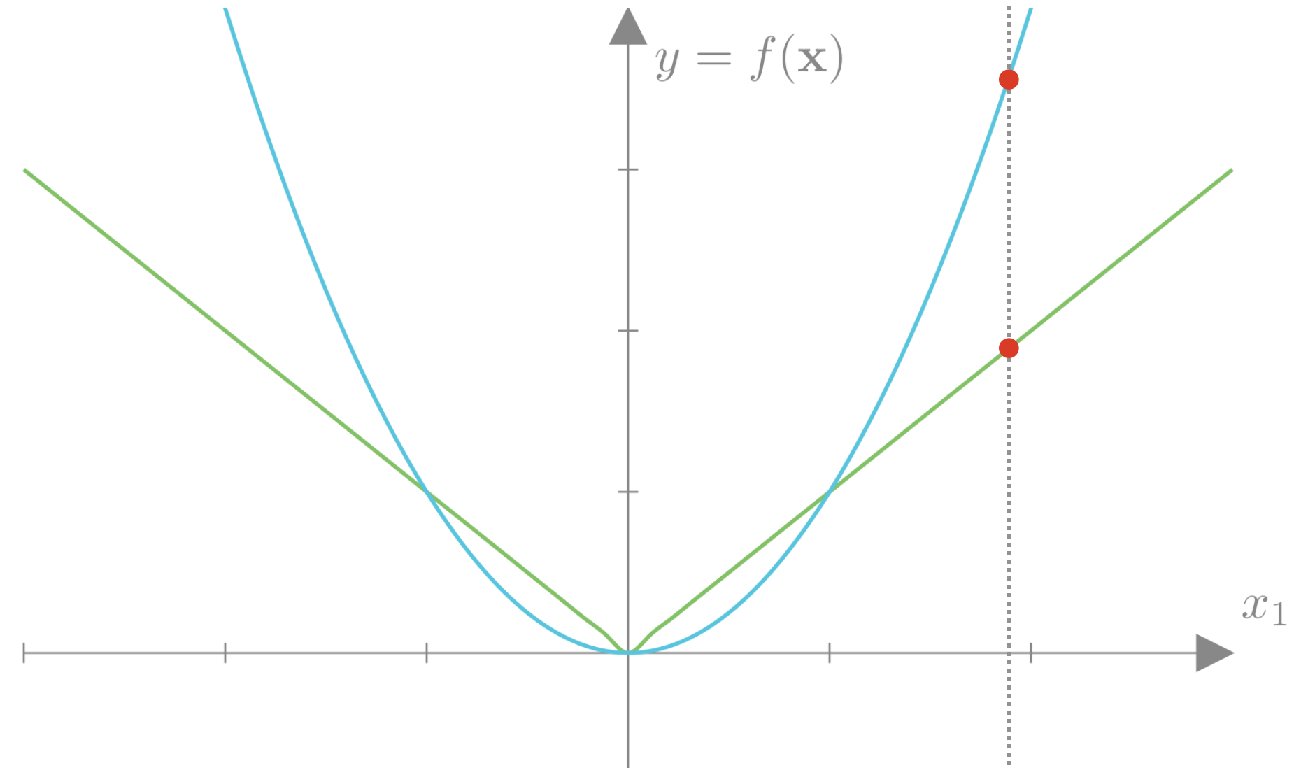 If we plot the L2 and L1 losses for a single weight \(w\), we can get a sense of the differences between these two approaches.